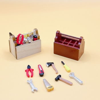 Wood Handmade Dollhouse Doll House Miniature Food Play Scene Toolbox Mini Hammer Wrench Photography Decoration Props